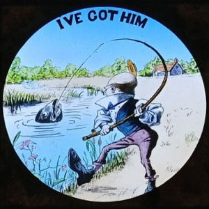 serie van negen lantaarnplaten gemaakt door York and Son, Engeland.In deze set ontbreekt plaat #5. Die is hieronder vervangen door een plaat uit een andere set. |