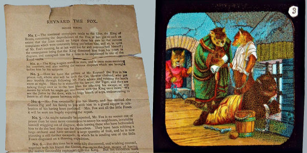 Reynard the Fox (First series). Set of twelve magic lantern slides published by Theobald & Co. in their Theobald transfer slide sets, number 93. ![]() |