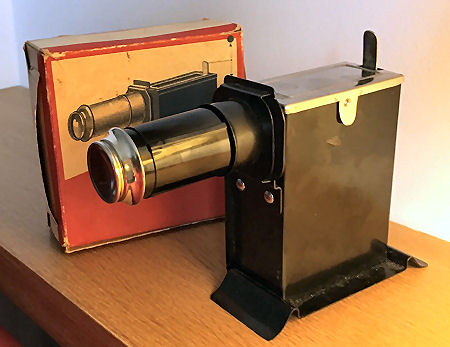 eenvoudiger model waarmee alleen plaatjes konden worden vertoond. De afmetingen en vormgeving van beide lantaarns zijn gelijk: 18, 5 cm l x 10 cm b x 16 cm h. |