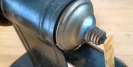 ![]() Zo ongeveer het aller, allereenvoudigste toverlantaarntje. Het gebruikt een platte, 4,5 volt batterij om het kleine gloeilampje aan de achterkant te laten branden. |