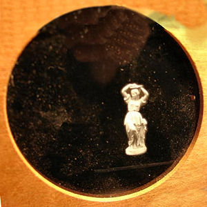 De afbeelding is op een glasplaat geschilderd, die samen met een