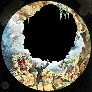 worden (b). Voor het uitvoeren van het effect (c) waren twee toverlantaarns nodig. Omdat veel mensen slechts één lantaarn bezaten werd dezelfde serie soms ook uitgebracht met een aantal platen waarop het effect reeds aanwezig was (d). Soms werden er zes of meer van zulke effecten gebruikt en dan moesten er dus meerdere dezelfde platen met een ander effect toegevoegd (d, e en f) worden. Doordat deze na elkaar vertoond werden, zonder overvloeier, was het effect natuurlijk een stuk minder imponerend. |
