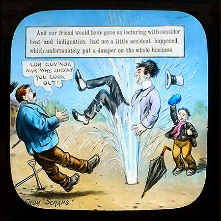 Mr Knowall and the Waterworks Department A set of four slides made by York & Son, ca 1910. The source of the images is the magazine Scraps. | |