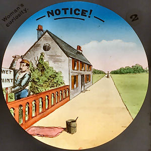 Woman's curiosity. A set of 6 square magic lantern slides made by an unknown manufacturer. |