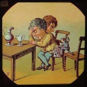 | Below is a set of magic lantern slides with some images very similar to the slides above. The 7 slides are painted by hand, the manufacturer is unknown: | ||