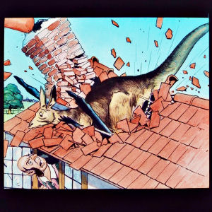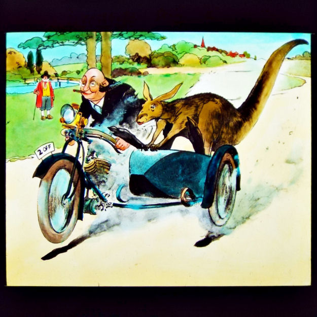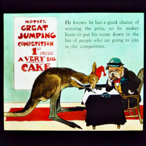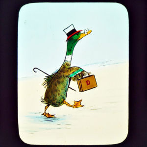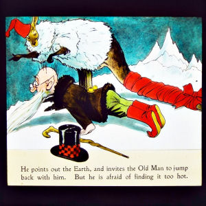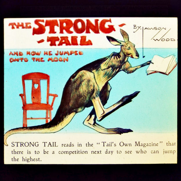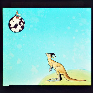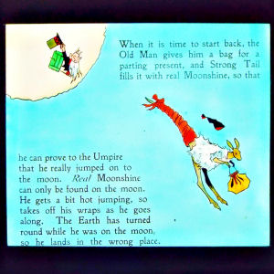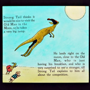 |  |  | Een serie van 12 vierkante lantaarnplaten gemaakt door Newton & Co., Engeland naar het kinderboekje 'The Strong Tail and how he jumped onto the moon'. |