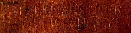 wood mount depicting a pair of Scotish lovers. That guy was a fast worker! The name of the manufacturer, T.H. McAlister, Optician New York, is printed in the wood of the frame. |