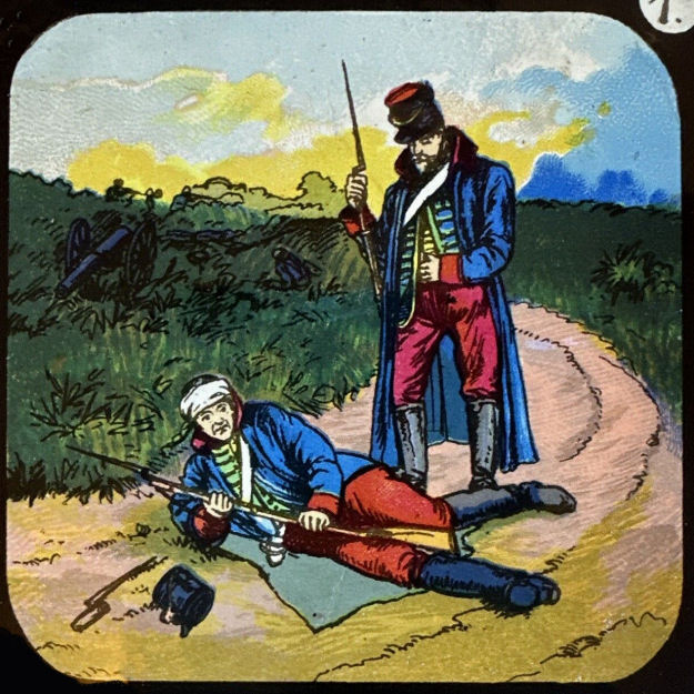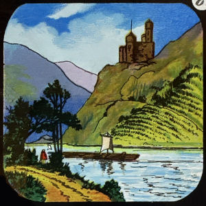 Bingen on the Rhine: a tale of love and war A series of 12 magic lantern slides after the poem by Caroline Elizabeth Norton ‘Bingen on the Rhine’ produced by Theobald & Co., London, as transfer slide set nr 10. Bingen on the Rhine (partial) |