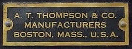 vermelding van de fabrikant A.T.THOMPSON & CO. MANUFACTURERS BOSTON,MASS., U.S.A.