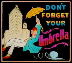 umbrella when leaving the performance.The motto's might also be seasonal, to wish you ‘A Merry Christmas’, ‘A happy New Year’ or ‘Compliments of the Season’. Also patriotic (‘God Save the Queen’) or sacred (‘God bless you) motto slides were frequently used. Particularly suited for a performance on the occasion of a birthday was ‘Many Happy Returns of the Day’.