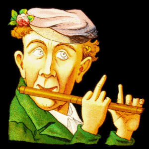 ![]() Standard American 3.25" x 4" (8.2 x 4 cm) glass magic lantern slide. Nice caricatures of a flute player, a piccolo player, a trumpet player, and a tuba player, standing on a cobblestone street. The paper label states: "K No. 1 -- Dot Leedle German Band." "Dot Leedle" is not the name of the band-leader. It is a dialect rendering of "That Little," as it would be spoken in English by someone with a German accent. |
