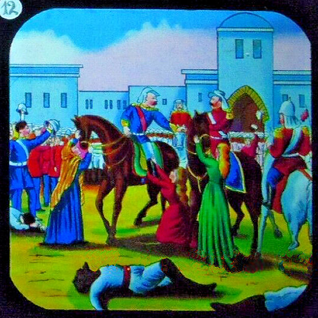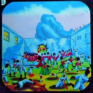 Jessie's dream: or the relief of Lucknow Twelve magic lantern slides from Theobald & Co., ca 1900. The siege of Lucknow was the prolonged defence of the British Residency within the city of Lucknow from rebel sepoys (Indian soldiers in the British East India Company's Army) during the Indian Rebellion of 1857. After two successive relief attempts had reached the city, the defenders and civilians were evacuated from the Residency. |