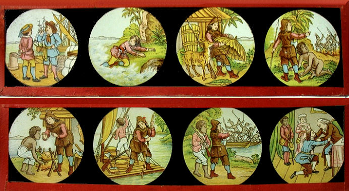his servant Friday in the same eight images. Each slide measures about 7.25" x