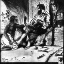 ![]() Nice set of twelve square magic lantern slides made by the American C.W. Briggs Co, c. 1880s. Pictures in a sketchy style. The pictures are set up in thin contour lines and after that painted by hand. Striking is the absence of Friday. |