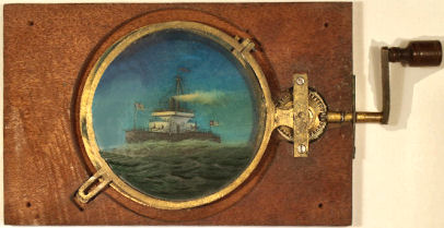 realistic illusion of the rolling sea when the crank is turned round. The slide