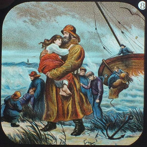 ![]() A set of five magic lantern slides titled 'Fated Ship'. It represents American ships in different situations. The wooden frames measure 7 by 4 inches (or 18 x 10 cm). The manufacturer is T.H. Mc Allister, optician N.Y. |