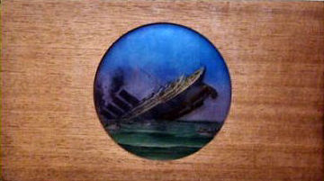 | The labels read: "III Fated Ship.-1 Leaving port" "III Fated Ship.-2 Sailing with fair wind" "III Fated Ship.-3 Among the Iceberg" "III Fated Ship.-4 On a ...rock" "III Fated Ship.-5 On Fire!" |