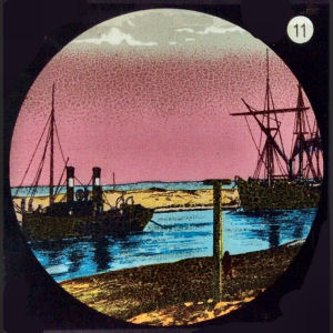![]() Ships in a port. Magic lantern slide made by Ernst Plank (Germany). |