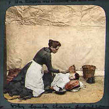![]() Set of 12 magic lantern slides of which 5 are shown here. Framed in mahogany. Size: 7 x 4 7/8". Made by by T.H. McAllister Optician N.Y. |