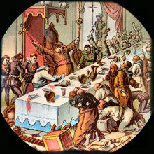 Directions for use: The series of mainly 12-slide sets have been produced in the late 19th and early 20th centuries. They seem to have been sold under a number of different trade names, with many retailers sometimes applying their own series name. That's also why the slide sets come upon in a lot of different cardboard boxes. It is therefore not sure that Theobald is the manufacturer of all the slide sets mentioned below, or that he was partly only one of the many retailers. The titles below are marked as follows: TCAT1890 # 00 --- The set occurs in the 1890 Theobald & Co. Catalogue. ABTS # 00 --- The set is known as All Brithish T Series. TTSS # 00 --- The set is known as a part of Theobald Transfer Slide Sets. LGSCAT --- Sets that appear in the Lancaster Catalogue as Lancaster's Graphochrome Slides (without serial number). All known serial numbers are mentioned. If the set is available on this site one of the slides is shown. Click the hyperlink to go to the complete set. |