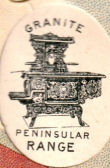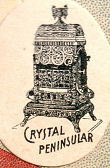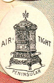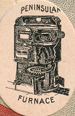 ![]() Aantrekkelijke mechanische trade card met een reclame voor Peninsular Furnaces, Stoves and Ranges (fornuizen, kachels en keukenovens). Afbeeldingen van de vele kachels die door 'The Leading Stove Manufacturers of the World' gemaakt werden, worden op een scherm op het toneel geprojecteerd door middel van een draaibare schijf aan de achterkant van de kaart. Afmetingen circa 8 x 14 cm. |