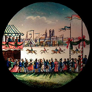 (Horserace in Münch). The horses and their riders are painted on an movable