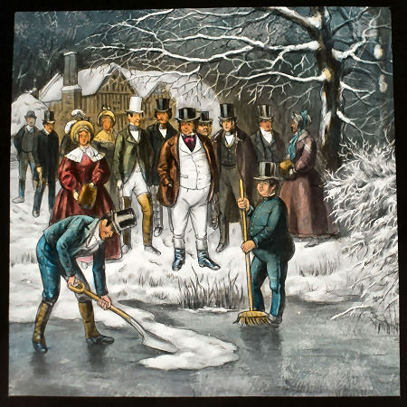 The Seasons. #4. Ice skating. (De seizoenen #4 Schaatsen op het ijs) Vierkante (8.2 x 8.2 cm) toverlantaarnplaat. |